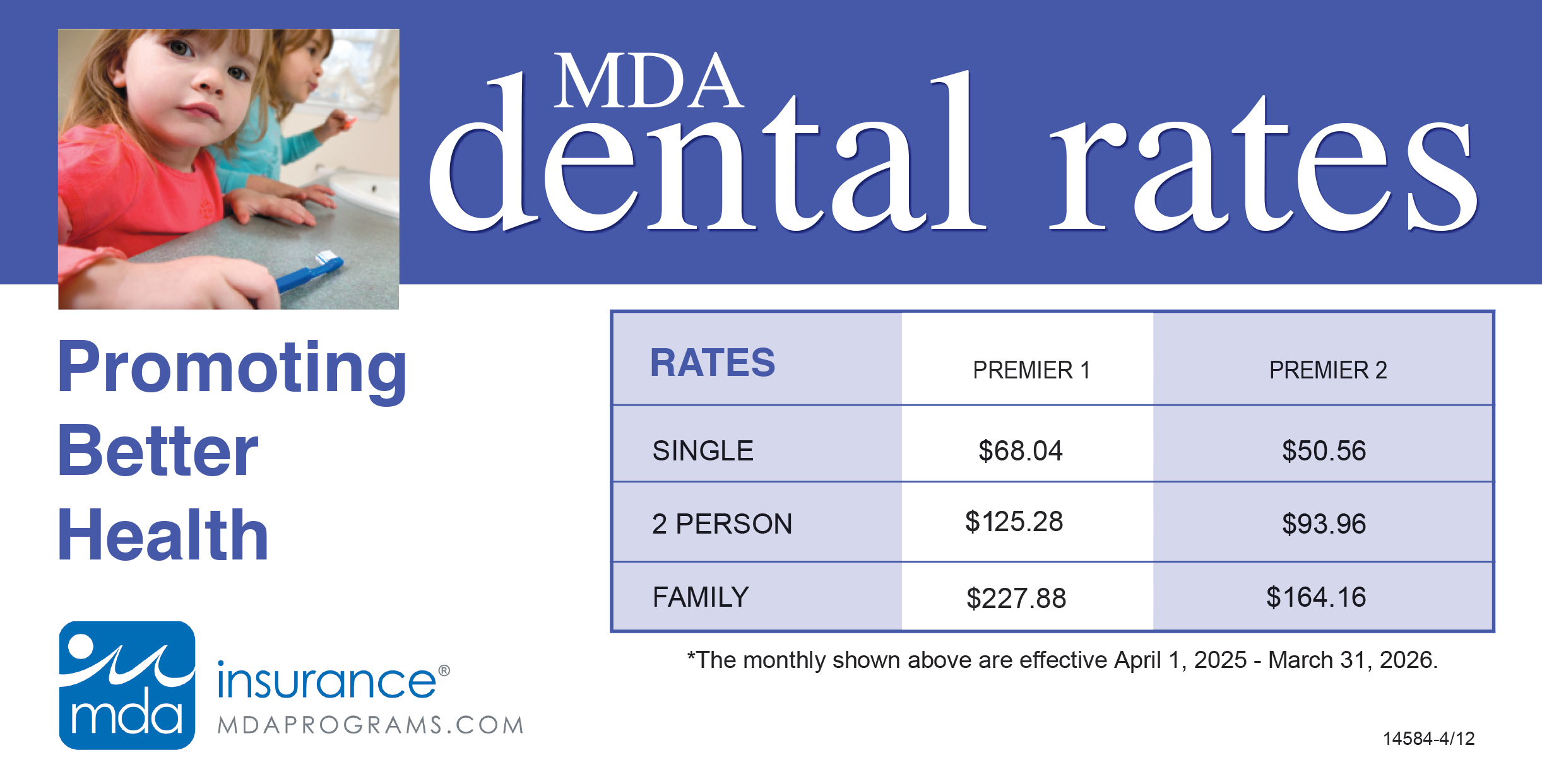 Dental insurance through Member Insurance Solutions is available to you, your family and your employees. Coverage is available on a stand-alone basis and if purchased does require a 24-month enrollment. These policies are billed on a quarterly basis for ease of payment.